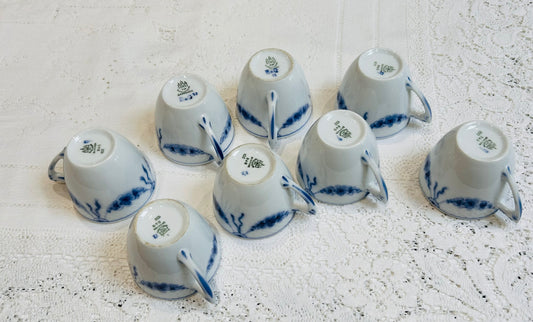 Danmark Bing Grondahl China Cups and Saucers White Blue Empire Pattern Vintage from Denmark