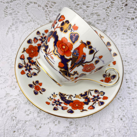 Aynsley China Teacup Saucer Set Birds of Paradise Red Blue Gold afternoon tea replicated from an older design