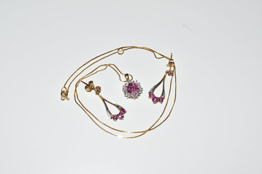 Sold Out - 9ct gold necklace and matching earrings diamond & ruby pendant