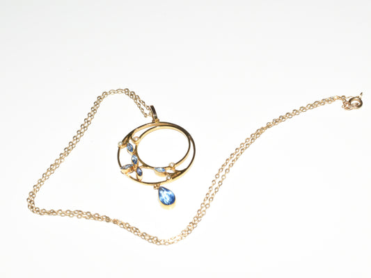 Sold - Antique Ladies Pendant Ceylon Sapphire & Seed Pearl 9ct Gold on a fine 9ct gold chain