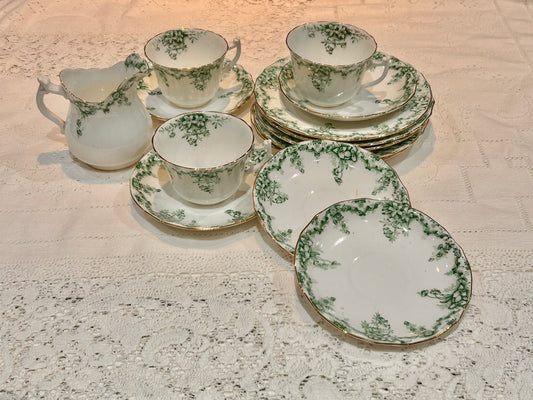 Sold - Antique Tuscan China Teacups Saucers Green Tea Set