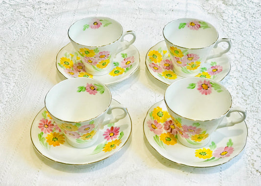 Sold - Pretty Vintage part tea set pink & yellow flowers