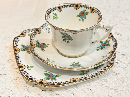 Sold Out - Roslyn Art Deco Teacups & Saucers Green