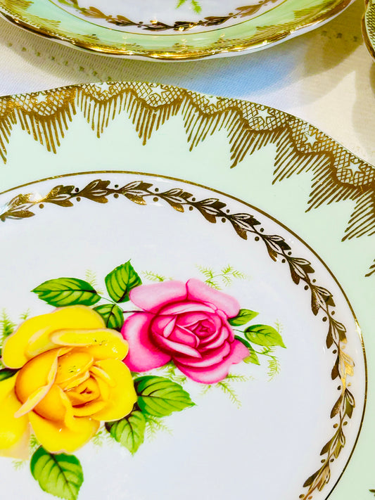 Imperial China Pink & Yellow Rose Teacup & Saucer Trio