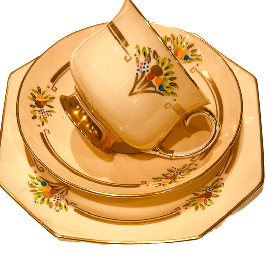 Paragon China Cup & Saucer | 1930s Floral Gift Set English China / Yellow & Blue