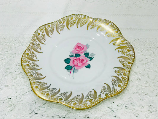 Vintage Tea China - Pink Rose & Gold Accent Teacup & Saucer