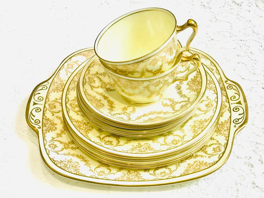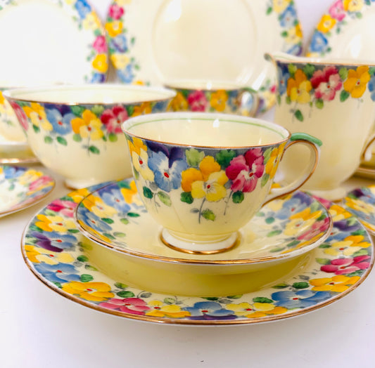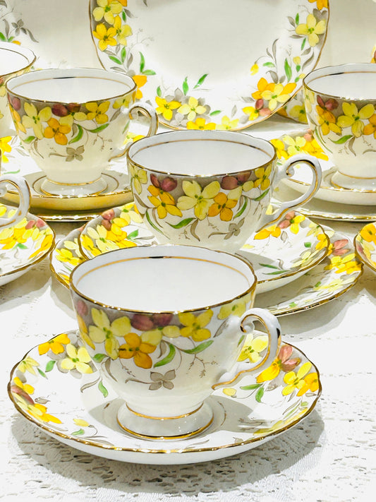 Floral English Bone China Vintage Tea Set for Afternoon Tea Yellow c. 1940