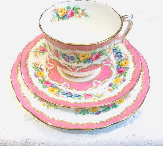 Crown Staffordshire China Pink Tea Set Vintage English Teacups & Saucers