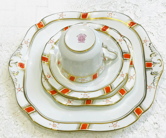 Bold Red & Gold Art Deco China by Fenton Part Tea Set E Hughes Paladin