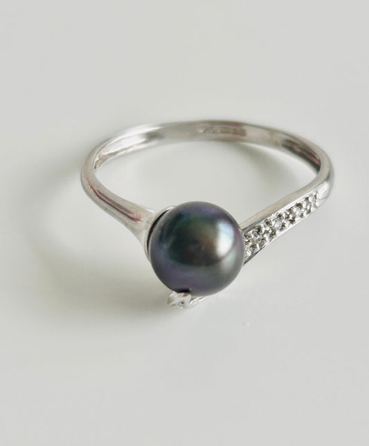 Sold - Vintage Jewellery - Ladies 9ct White Gold Black Tahitian Pearl Ring