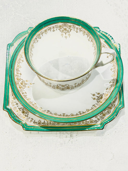 Aynsley Bone China Teacup Set – Vintage Emerald Green & Gold Filigree | Made in England