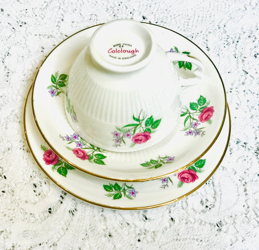 Joli trio de tasses à thé et soucoupes roses vintage par Colclough China