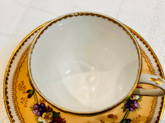 Tasse antique en porcelaine anglaise – Finition brillante, bord doré, intérieur de caractère – Style européen