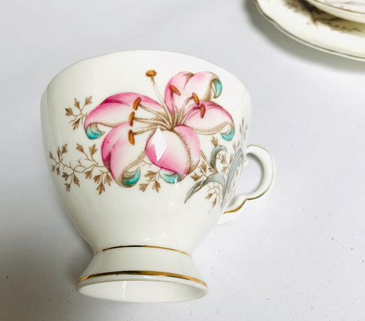 Service à café vintage en porcelaine toscane motif « Reine des prés »