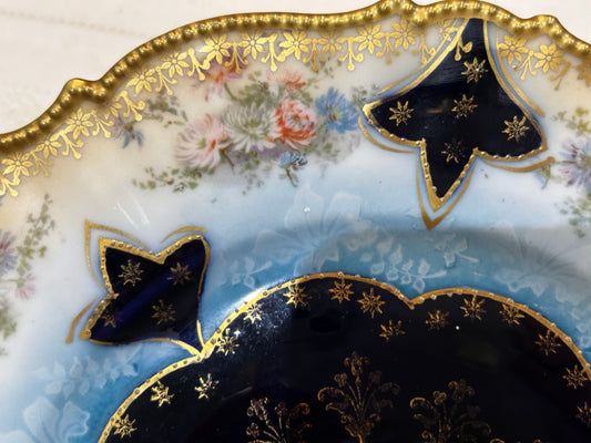 Assiette de vitrine en porcelaine prussienne de Viersa peinte à la main vintage