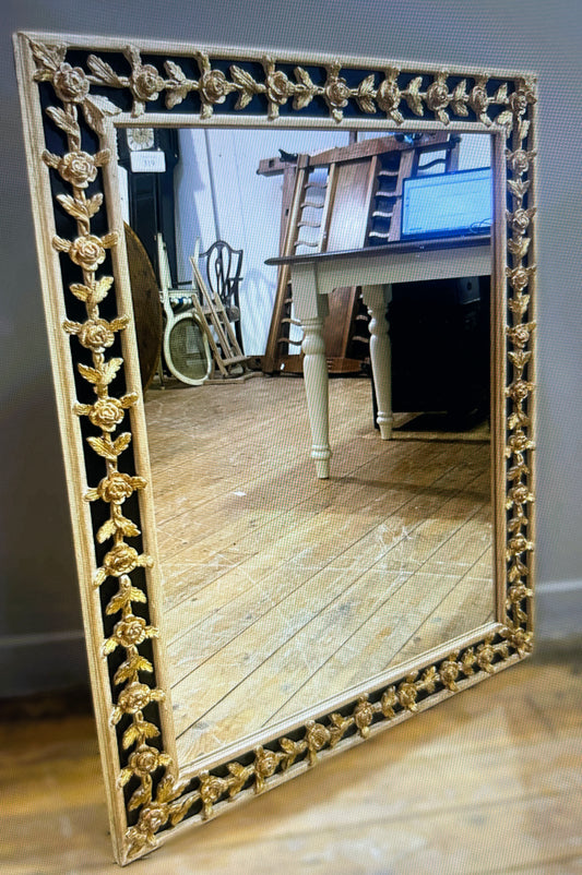 Miroir mural encadré en bois doré à motif floral - Italie, XXe siècle