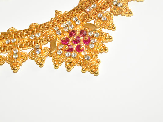 Costume Jewellery Necklace & Earrings Set Gold Tone Red & Clear Stones