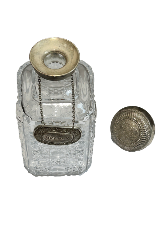 Sold - Crystal Decanter & Silver Plated Brandy Drinks Tag