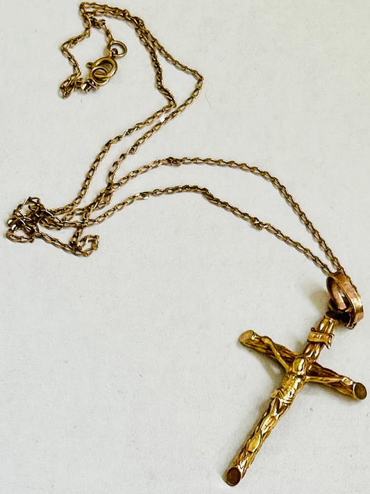 Sold - 9ct Gold Crucifix Religious Pendant Necklace