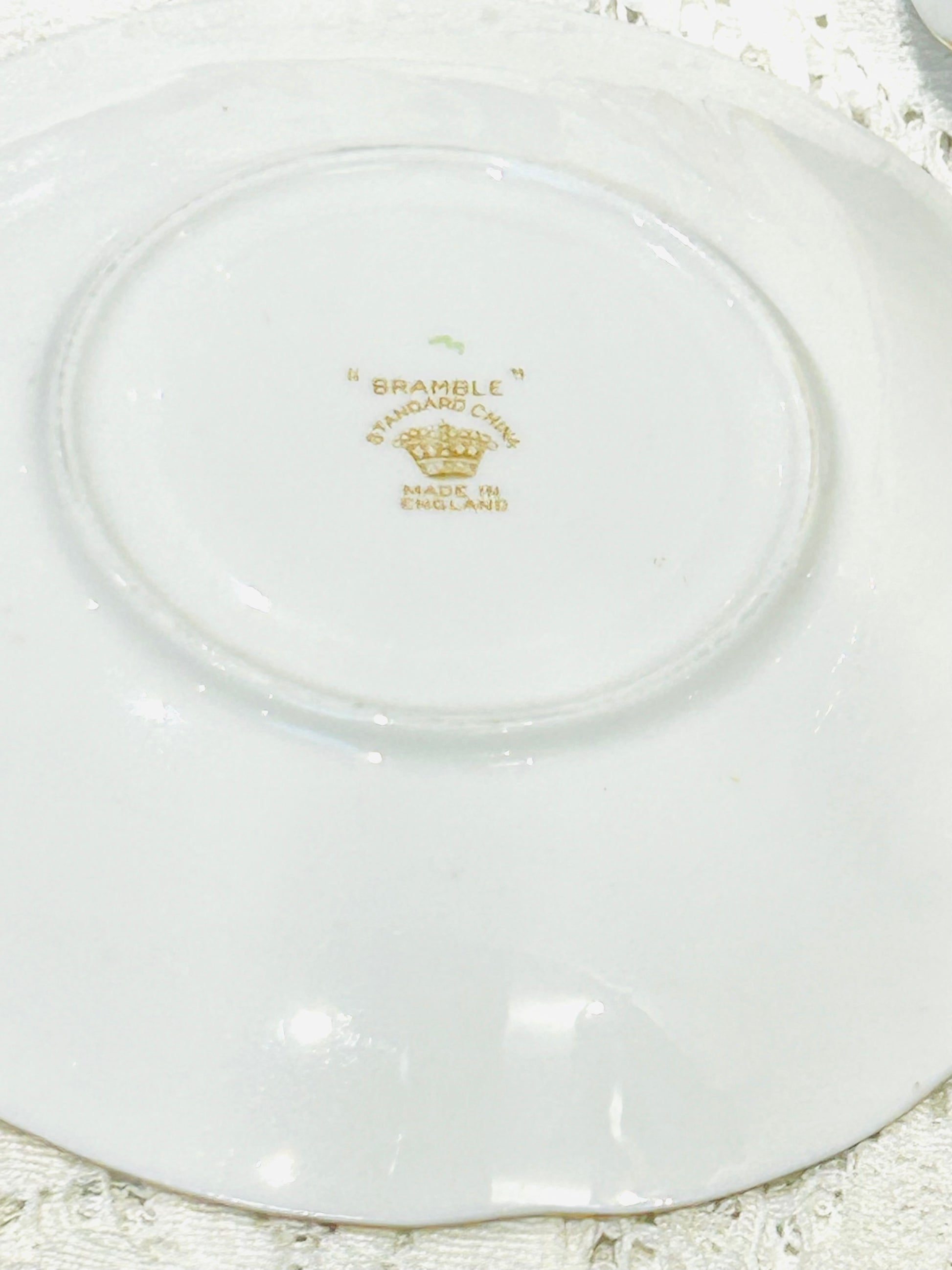 The “Bramble” pattern showcases classic English countryside styling, making it perfect for vintage kitchen décor, tea party tablescapes, and collectors of English china.