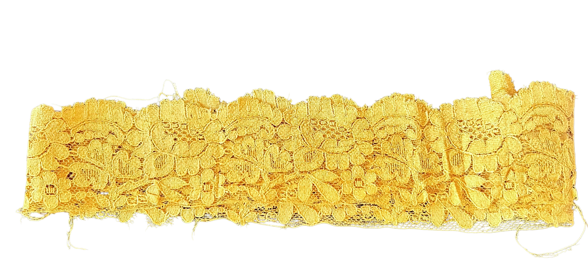Machine made vintage lace trim in yellow gold.