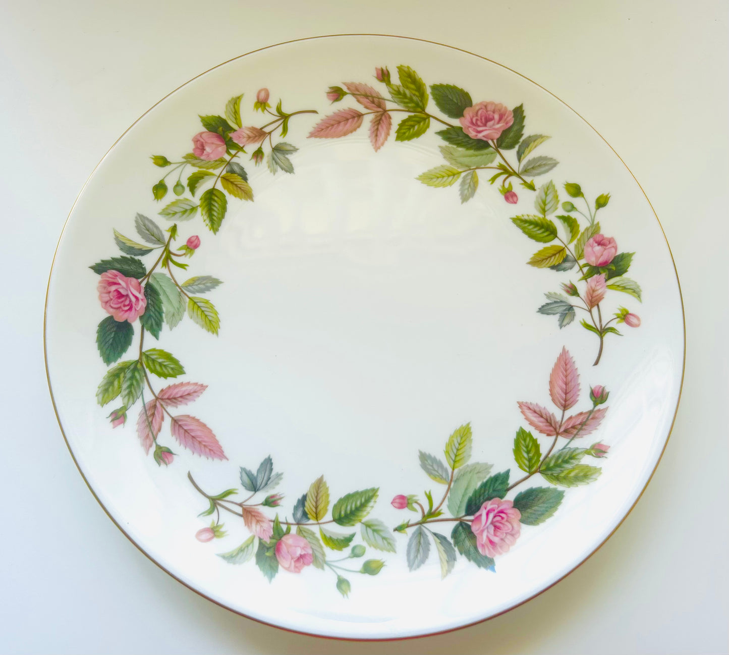 Wedgwood Hathaway Rose. English bone china.  White base colour decorated with pink roses.  Gold edges.  Very good condition, no damage.  Vintage replacement china 1 x side/tea plate.